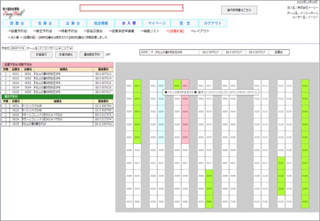 簡単なマウス操作で誰でもワンタッチで次回の入れ替え計画を立てる事ができます。設定台を間違ってしまった場合や、急遽撤去台や移動台の追加が発生した場合等もすぐに修正が可能です。